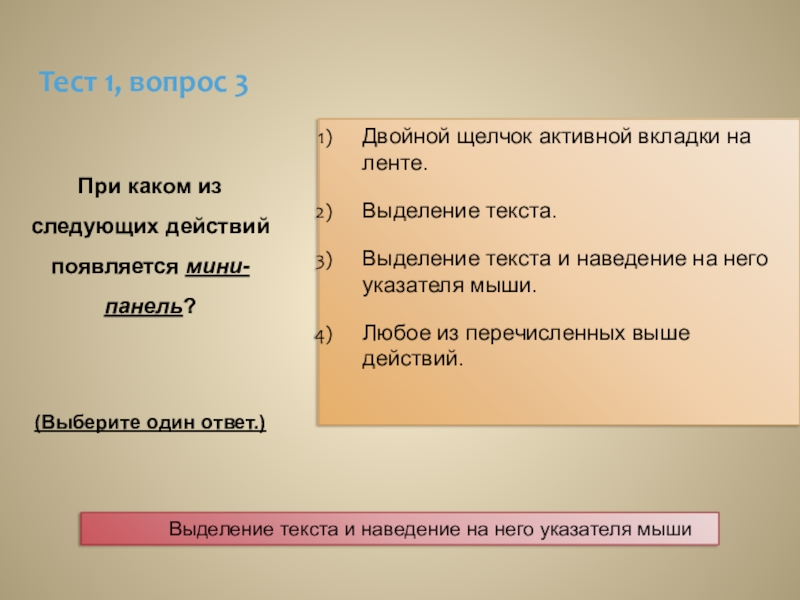 Выделение текста и наведение на него указателя мыши.