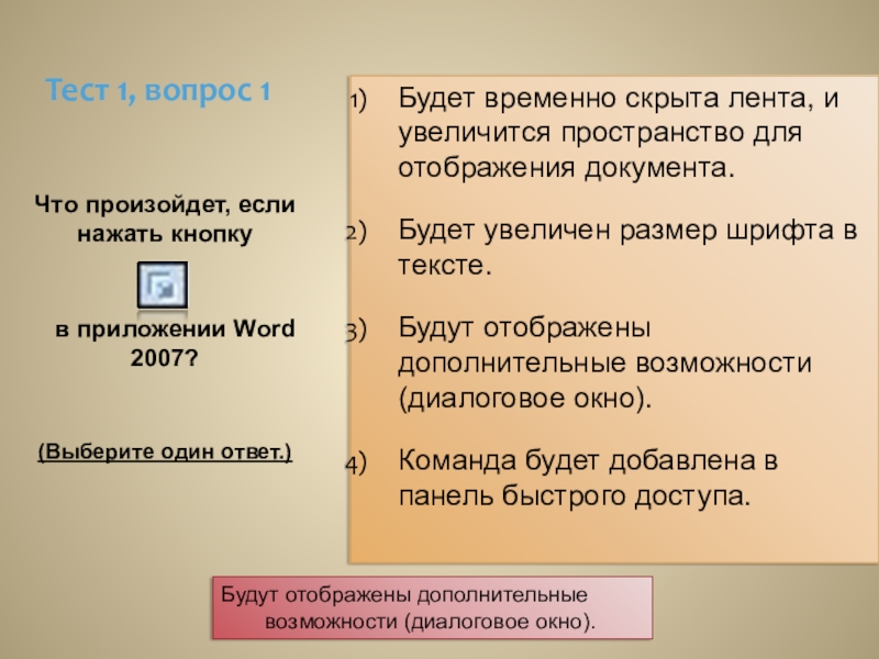 Будут отображены дополнительные возможности (диалоговое окно).