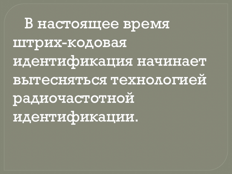 Слайд 18 В настоящее время штрих-кодовая идентификация начинает вытесняться технологией радиочастотной идентификации.