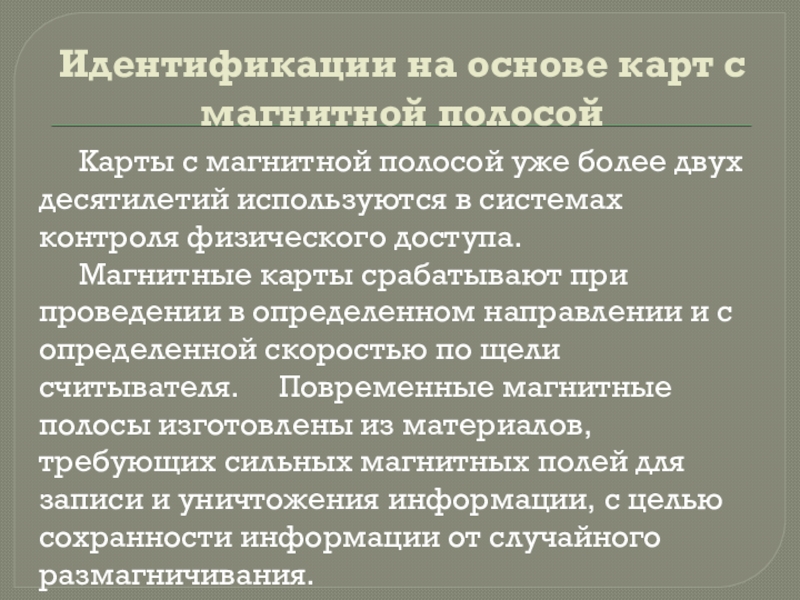 Слайд 24Идентификации на основе карт с магнитной полосой