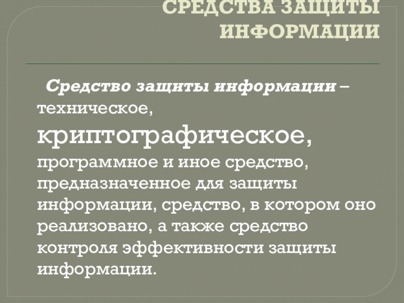 Слайд 5СРЕДСТВА ЗАЩИТЫ ИНФОРМАЦИИ