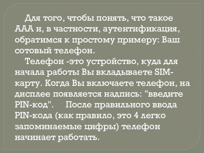 Слайд 28 Для того, чтобы понять, что такое AAA и, в частности, аутентификация,