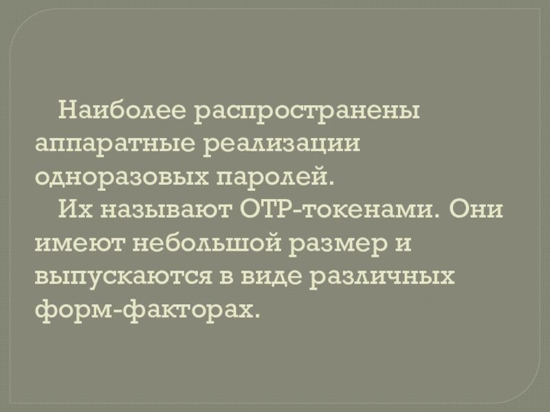 Наиболее распространены аппаратные реализации одноразовых паролей.