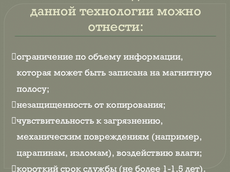 Слайд 26 К основным недостаткам данной технологии можно отнести: