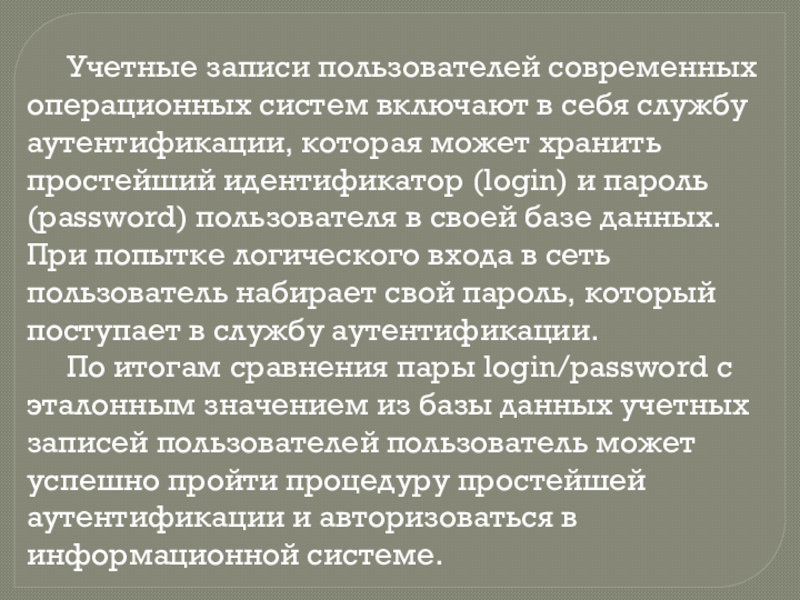 Слайд 33 Учетные записи пользователей современных операционных систем включают в себя службу