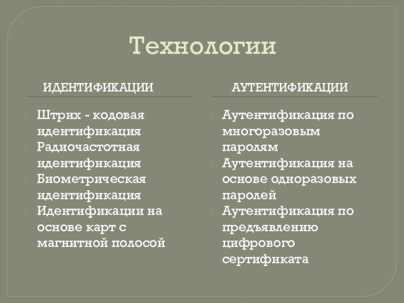Доклады и рефераты по теме : «Идентификация и аутентификация»
