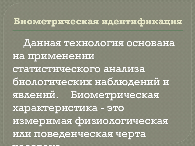 и явлений. Биометрическая характеристика - это измеримая физиологическая или поведенческая черта человека.