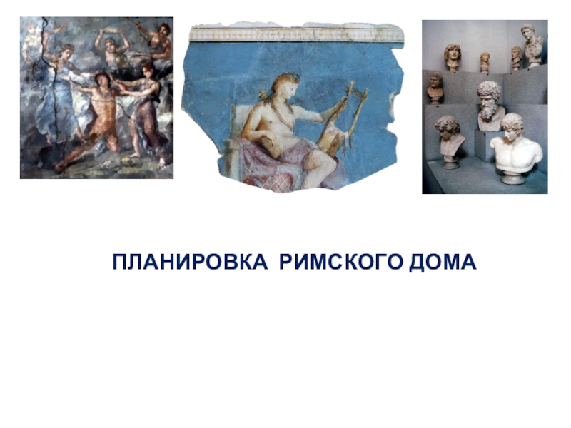 На фресках изображались фруктовые деревья, птицы, мифологические персонажи и бытовые картинки. Уникальная особенность римского дома – украшение атриума статуями умерших предков с ярко выраженными портретными чертами. Именно они положили начало портретному жанру.