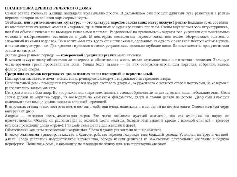 Жилые дома раннего периода — гомеровской Греции и архаики мало изучены.
