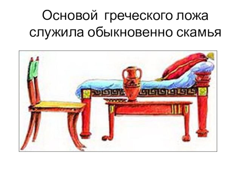 Слайд 23Основой греческого ложа служила обыкновенно скамья