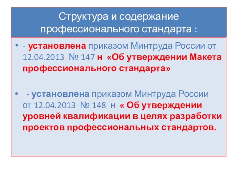от 12.04.2013 № 147 н «Об утверждении Макета профессионального стандарта»