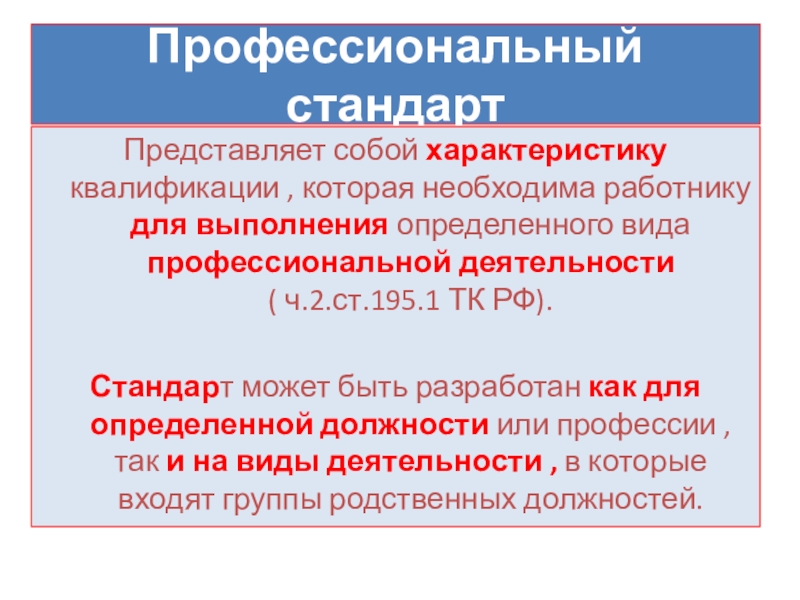 Стандарт может быть разработан как для определенной должности или профессии , так и на виды деятельности , в которые входят группы родственных должностей.