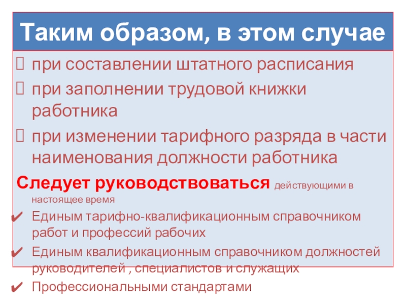В этих случаях наименование должности должно быть указано в соответствии с утвержденным профстандартом, а если стандарт еще не утвержден, то в соответствии с квалификационными справочниками.