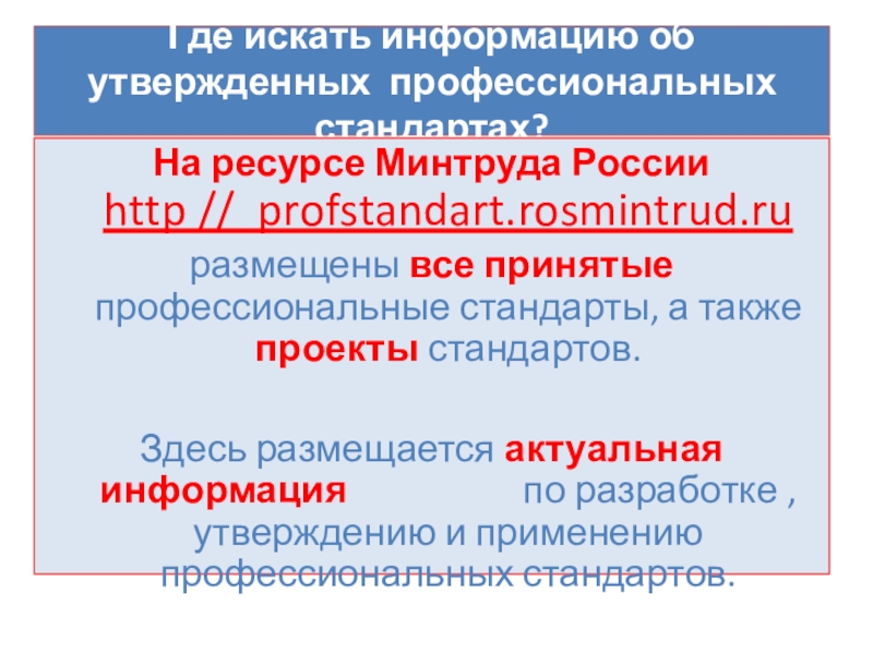 Слайд 9Где искать информацию об утвержденных профессиональных стандартах?