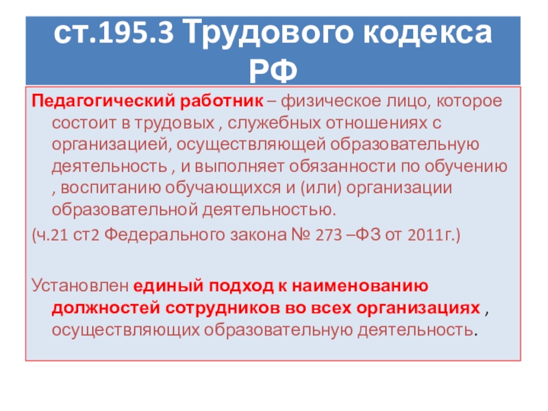 Слайд 21ст.195.3 Трудового кодекса РФ