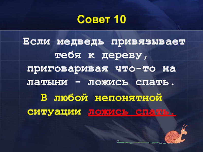 Совет 10 Если медведь привязывает тебя к дереву, приговаривая что-то на латыни - ложись спать. В любой