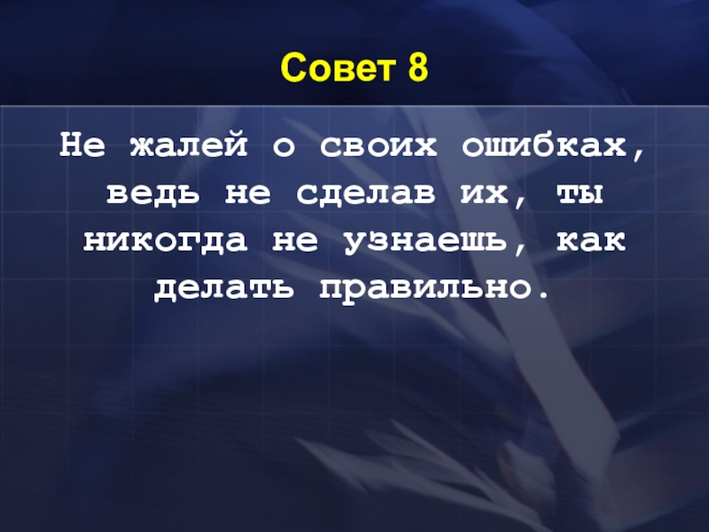 Совет 8Не жалей о своих ошибках, ведь не сделав их, ты никогда не узнаешь, как делать правильно.