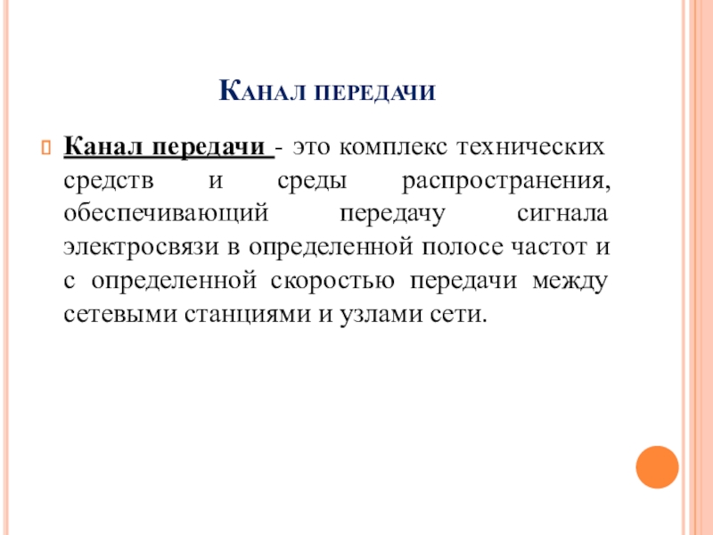 обеспечивающий передачу сигнала электросвязи в определенной полосе частот и с определенной скоростью передачи между сетевыми станциями и узлами сети.