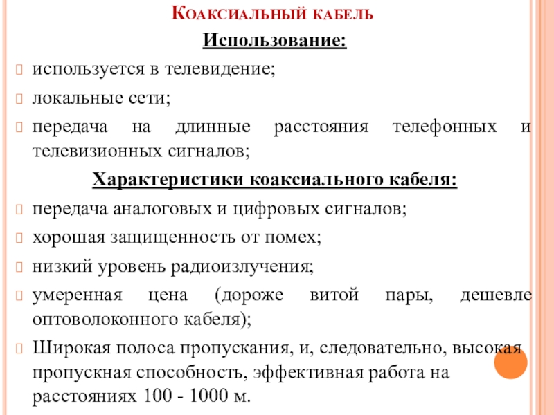 способен передавать сигнал на расстояние до 185 м без его заметного искажения, вызванного затуханием;