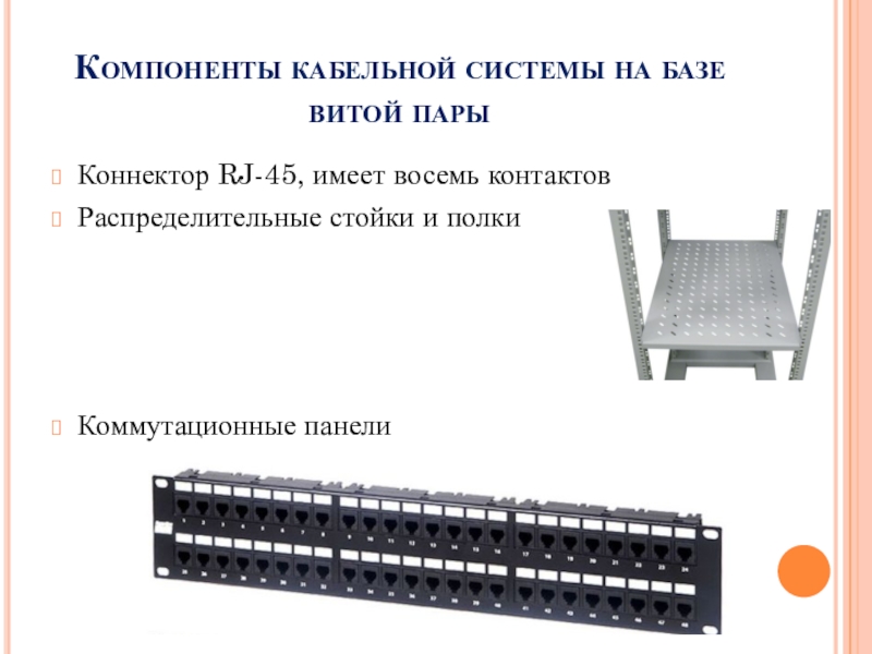 Слайд 22Компоненты кабельной системы на базе витой пары