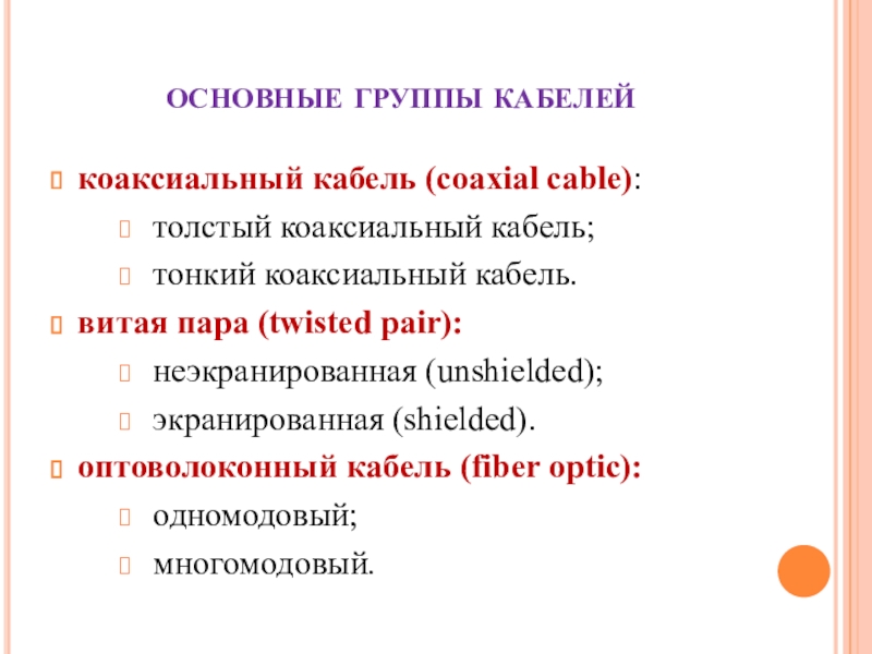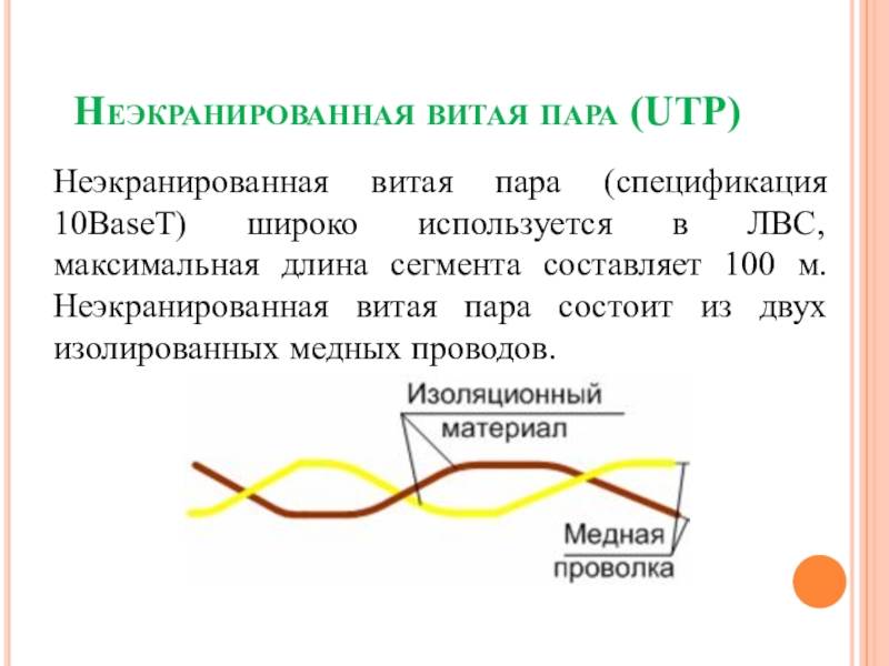 ЛВС, максимальная длина сегмента составляет 100 м. Неэкранированная витая пара состоит из двух изолированных медных проводов.