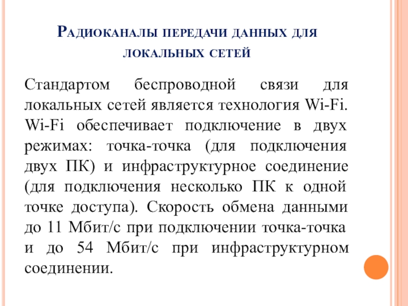 Слайд 32Радиоканалы передачи данных для локальных сетей