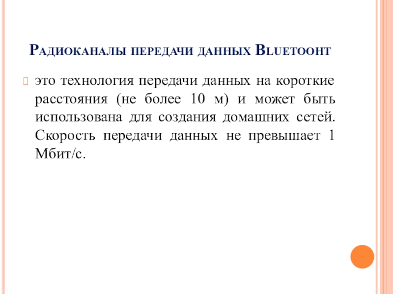 Слайд 34Радиоканалы передачи данных Bluetooht