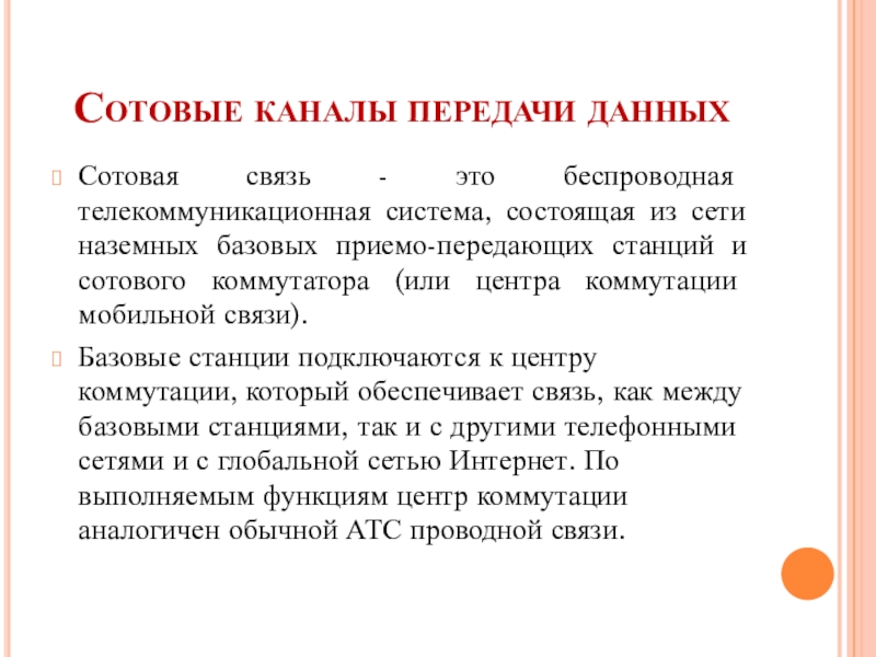 Сотовая связь - это беспроводная телекоммуникационная система, состоящая