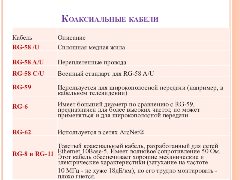 Компоненты кабельной системы на базе коаксиальных кабелей