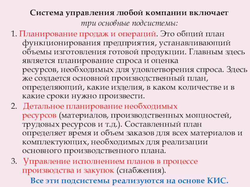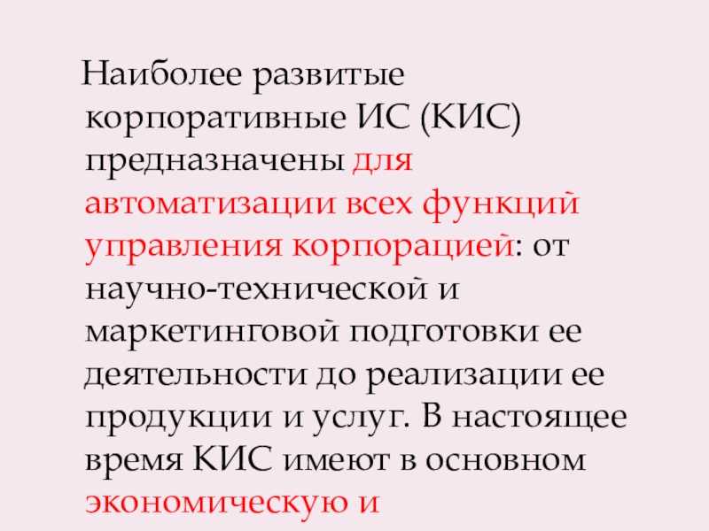 Слайд 8Корпоративные информационные системы (КИС) - это интегрированные системы управления территориально распределенной корпорацией, основанные