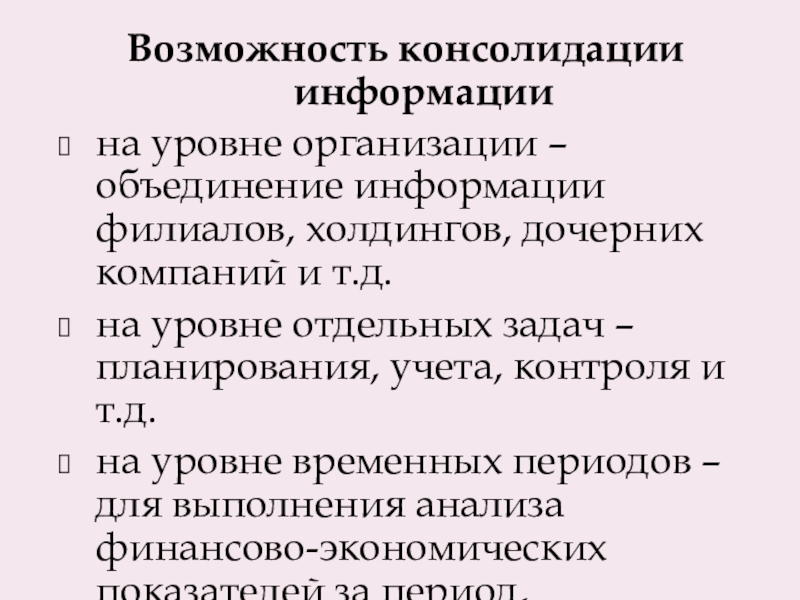 Слайд 15Возможность консолидации информации