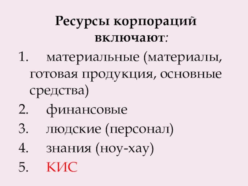 Слайд 6Ресурсы корпораций включают:
