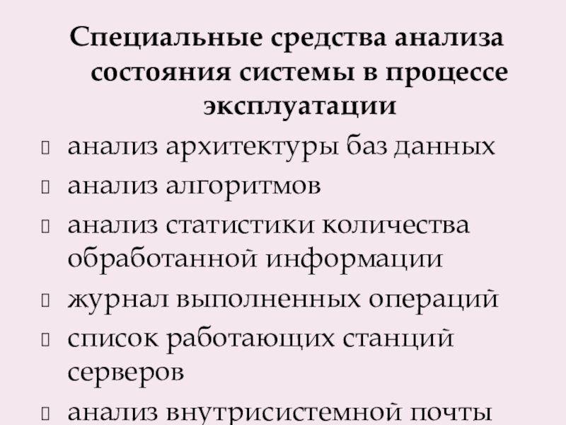 Слайд 16Специальные средства анализа состояния системы в процессе эксплуатации