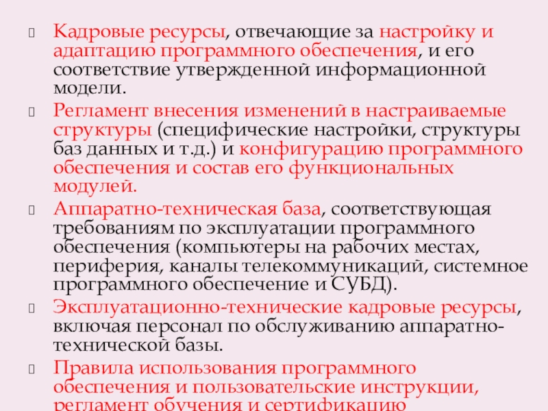 Слайд 5Кадровые ресурсы, отвечающие за настройку и адаптацию программного обеспечения, и его