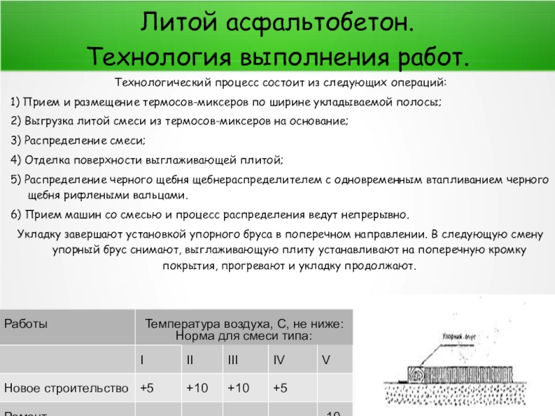 смесь III типа уплотняется с использованием трамбующего бруса и виброплиты, а при низких температурах (ниже 20°С) и 3-4 проходами гладковальцового статического катка.