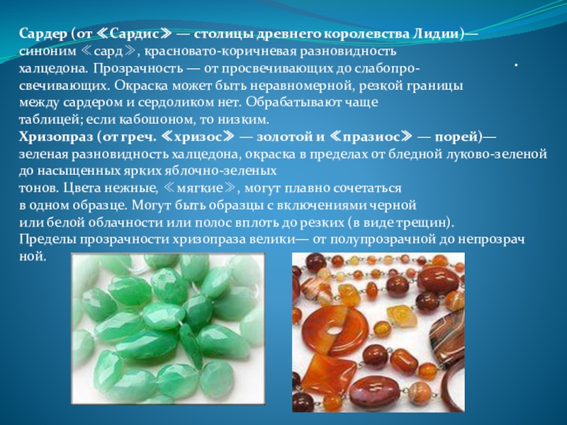 кабошоны, бусы, геммы, а также всевозможные поделки.