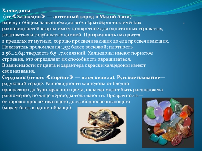 2. Горный хрусталь, дымчатый кварц, светлый аметист, халцедон, агат, сердолик, гелиотроп, хризопраз, празем, полуопал