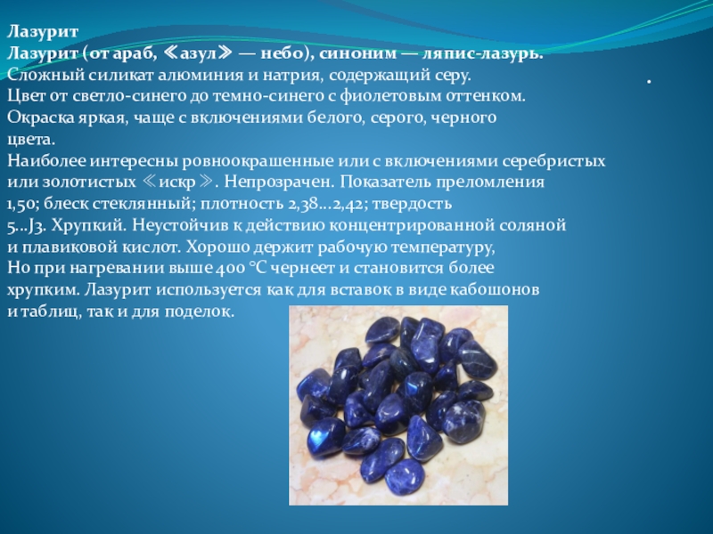 хрупким. Лазурит используется как для вставок в виде кабошонов