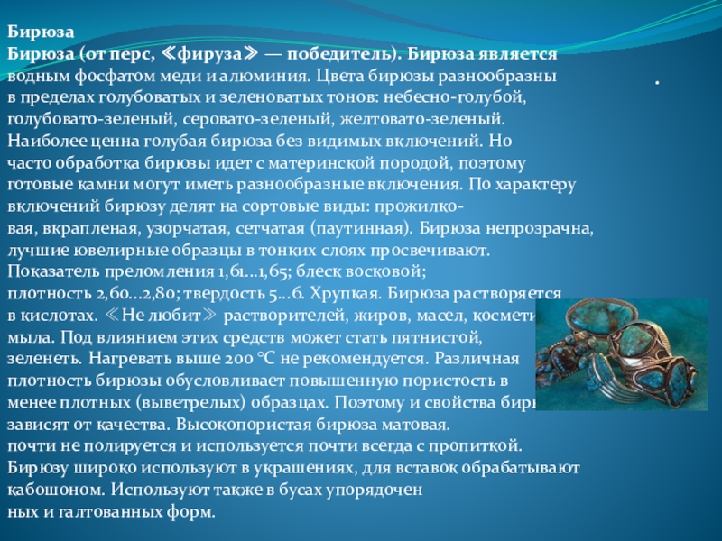 Бирюза (от перс, ≪фируза≫ — победитель). Бирюза является