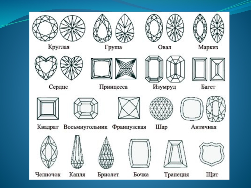 Слайд 7Тип огранки определяется формой граней, характером их расположения, а также количеством