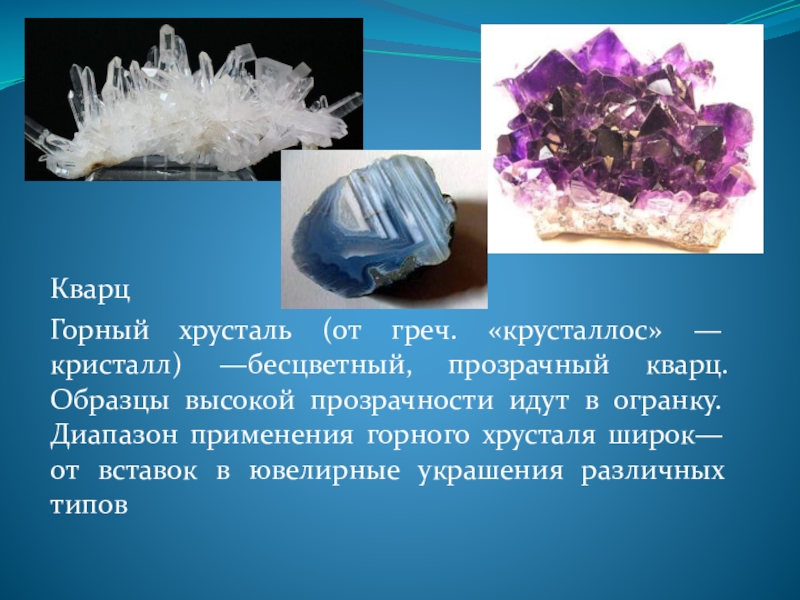 Кварц наиболее распространенный в природе минерал, пред ставляющий собой