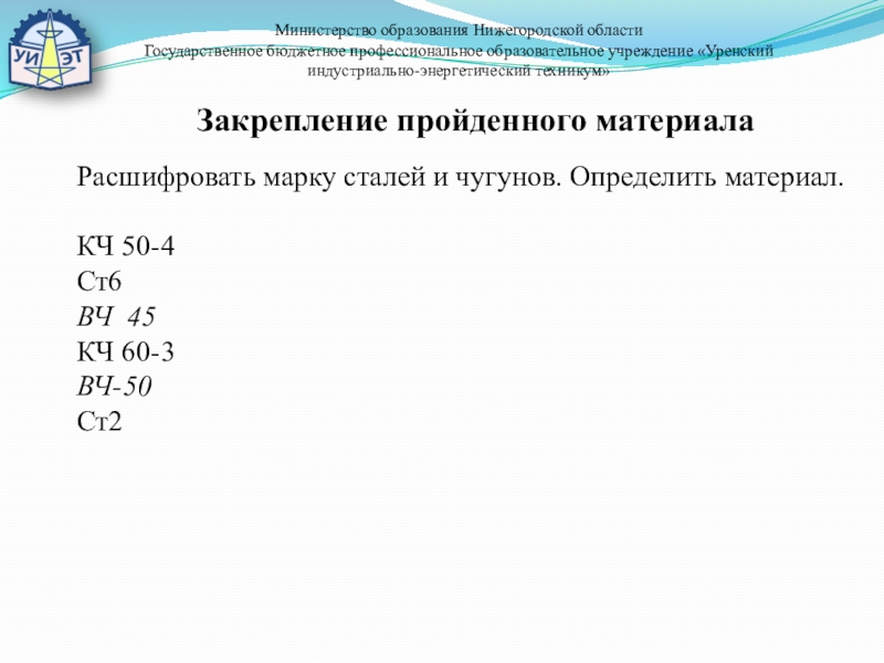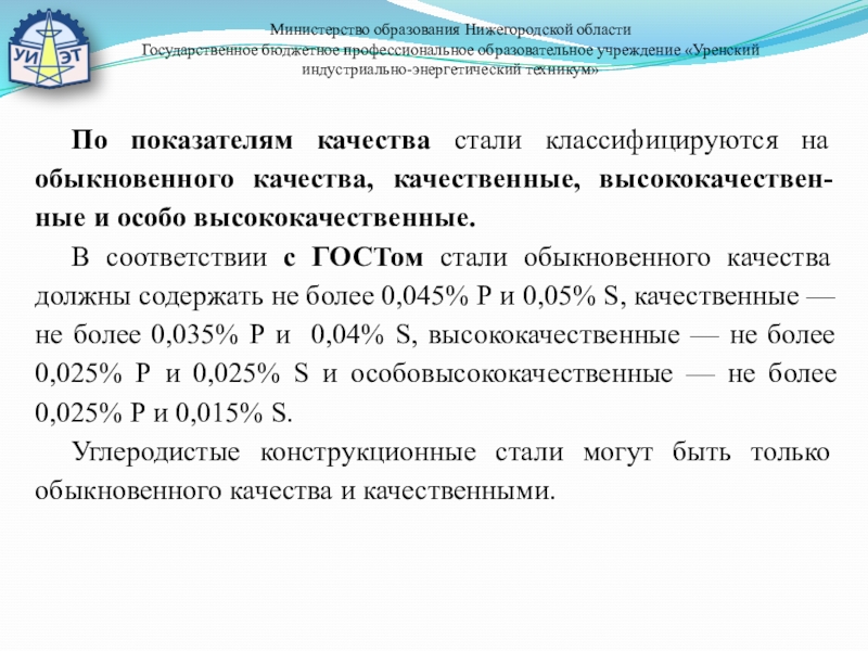 Государственное бюджетное профессиональное образовательное учреждение «Уренский индустриально-энергетический техникум»