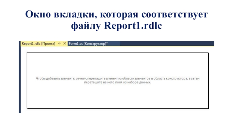 Слайд 9Окно вкладки, которая соответствует файлу Report1.rdlc