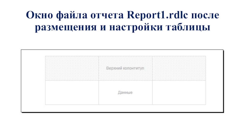 Слайд 12Окно файла отчета Report1.rdlc после размещения и настройки таблицы