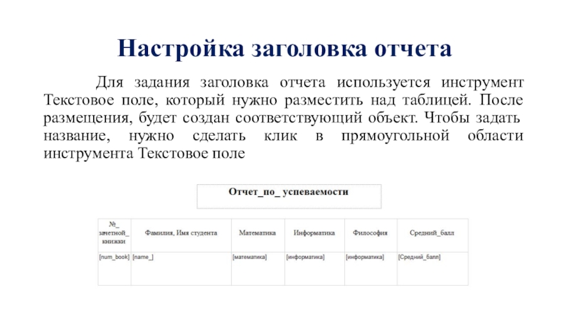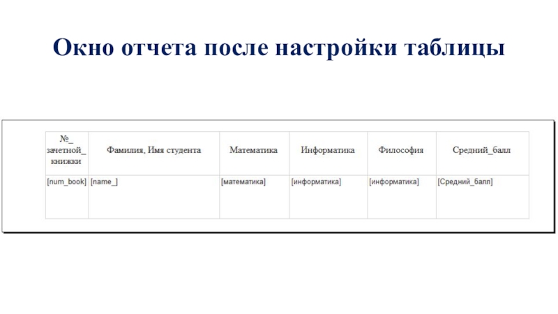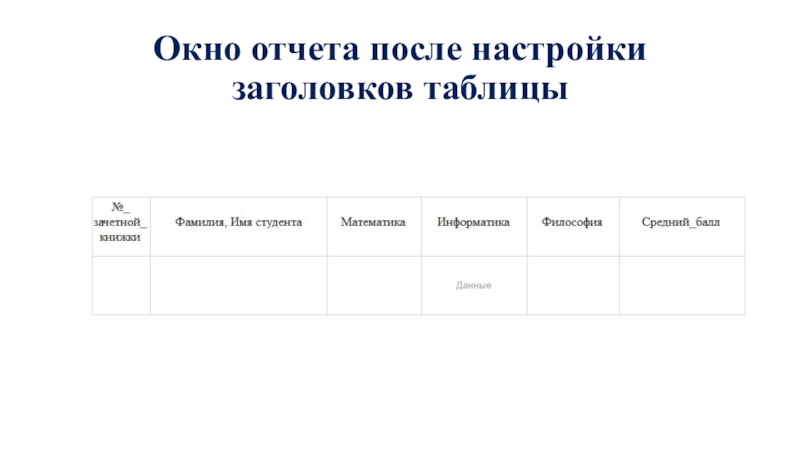 Слайд 16Окно отчета после настройки заголовков таблицы