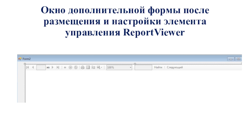 Слайд 21Окно дополнительной формы после размещения и настройки элемента управления ReportViewer