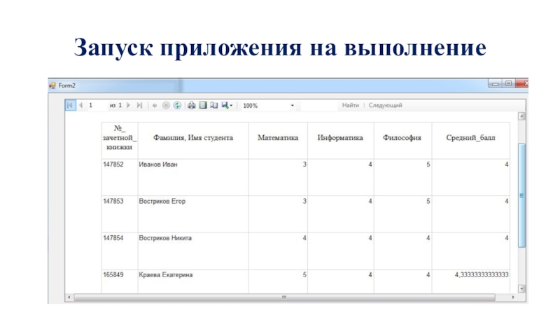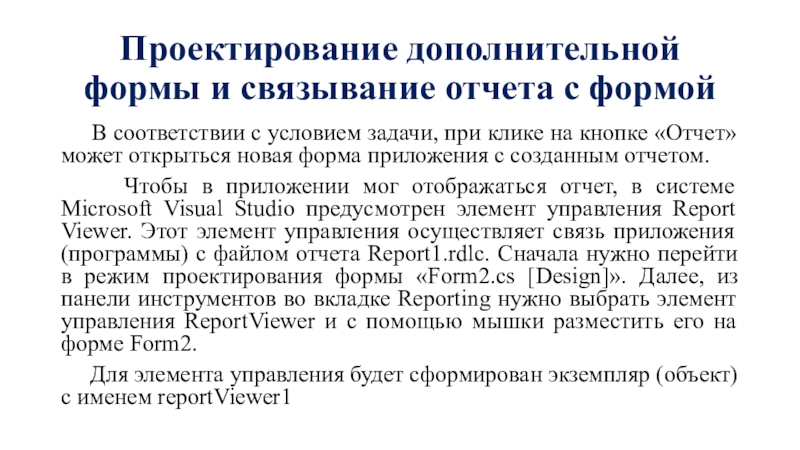Слайд 1Создание отчета в приложении. Элемент управления Report Viewer