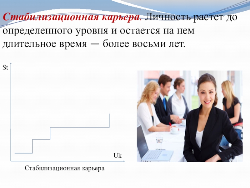Слайд 11Стабилизационная карьера. Личность растет до определенного уровня и остается на нем