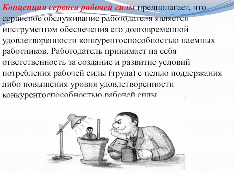 Слайд 32Концепция сервиса рабочей силы предполагает, что сервисное обслуживание работодателя является инструментом