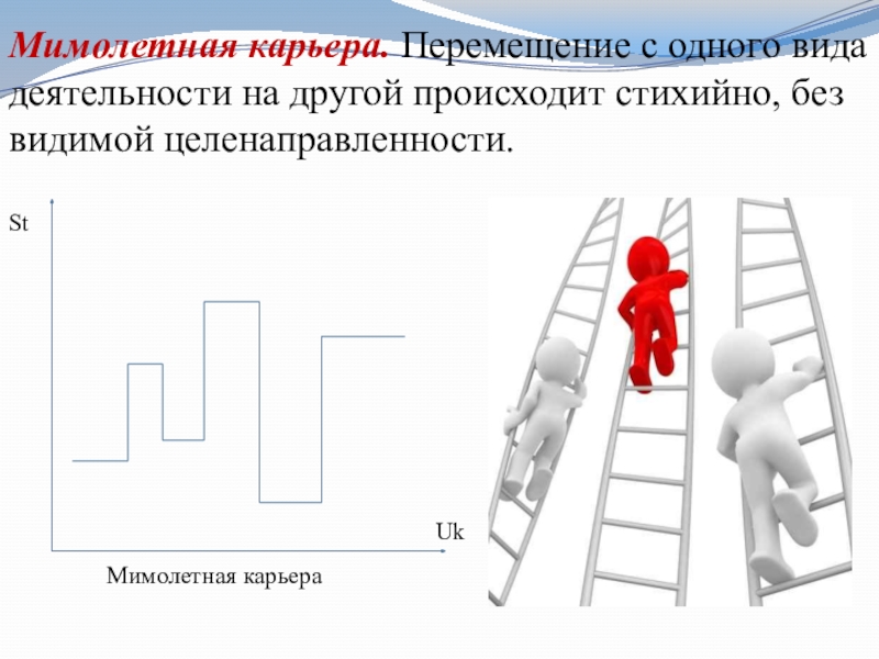 Слайд 10Мимолетная карьера. Перемещение с одного вида деятельности на другой происходит стихийно,